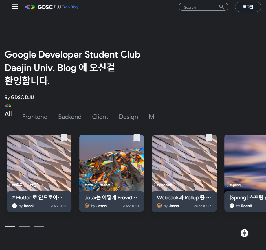 2021년도 9월 GDSC DJU가 0기 모집을 실시하며 이후 진행한 프로젝트 및 스터디 활동을 자체 제작 사이트에 기록하기 위해 만든 BLOG 사이트 입니다. 프론트 3명 , 백엔드 3명 , 디자이너 3명이 진행한 프로젝트 입니다. Stack : Java | Spring | Mysql | OCI